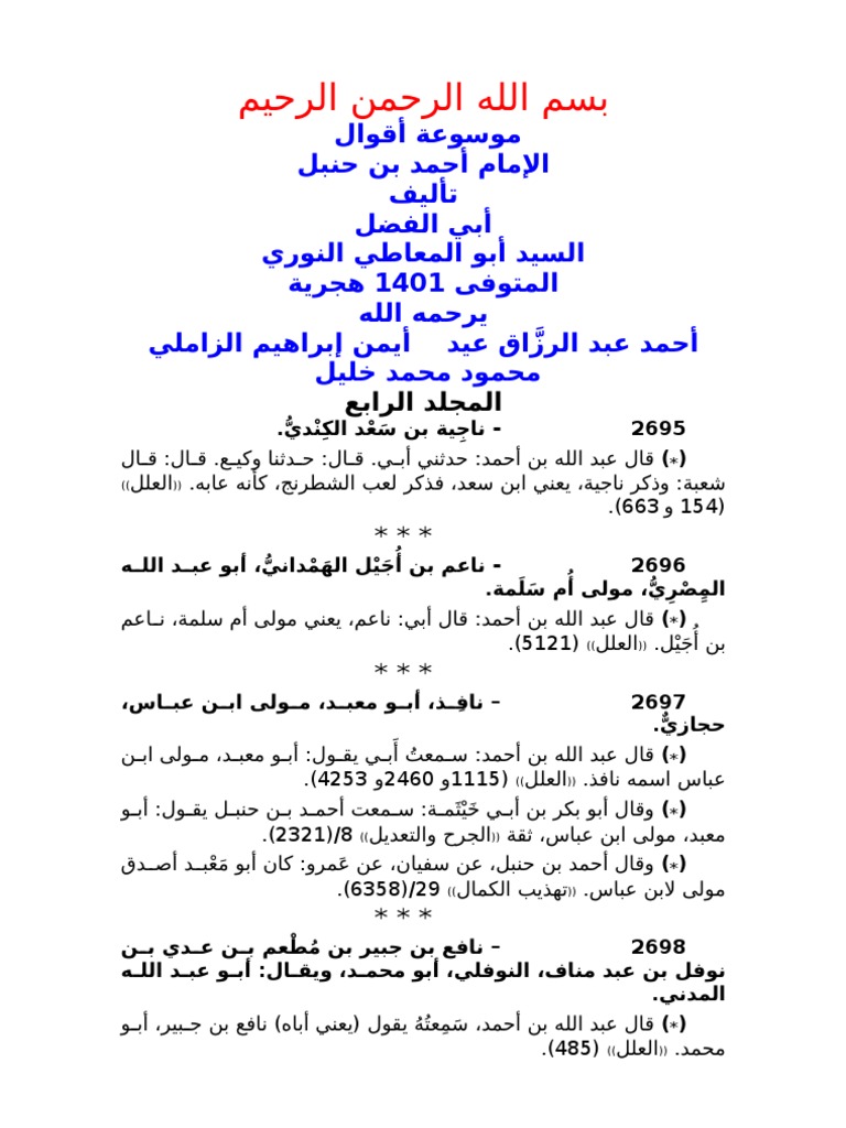 موسوعة أقوال الإمام أحمد بن حنبل 4