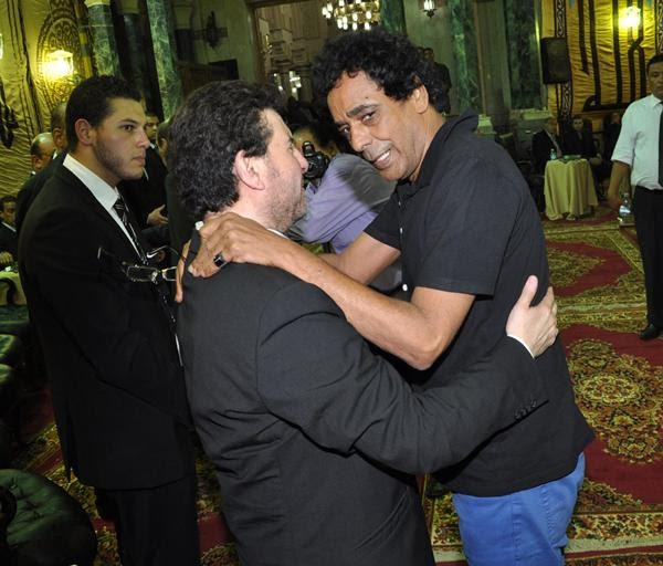 بالصور منير وعمرو وتامر يواسون هاني شاكر في عزاء ابنته خبر في الفن