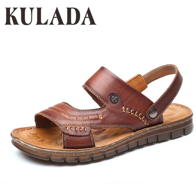 صنادل رجالي جديدة موضة صيف 2020 أحذية كاجوال من الجلد الطبيعي صندل رجالي للشاطئ بمقاسات كبيرة من 38 إلى 47 صنادل للخروج للرجال تخفيضات