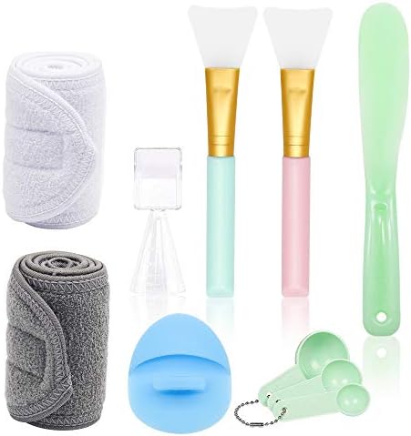 مجموعة أدوات خلط قناع الوجه من السيليكون 8 قطع مع قطعتين من عصابة الرأس في المنتجع الصحي مع قطعة واحدة من فرشاة تنظيف الوجه اليدوية للعناية بالوجه لوضع قناع الطين تنظيف الوجه